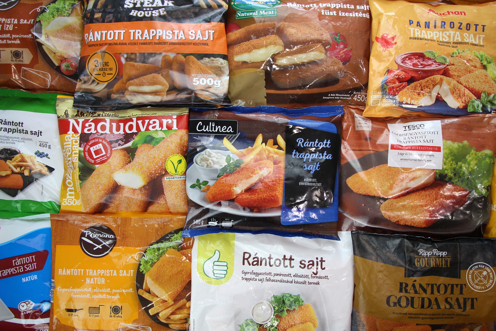 A teszthez az országos élelmiszerláncoknál vásároltunk be, márkás és sajátmárkás termékeket. A teszten csak natúr, fagyasztott rántott sajtok vettek részt.
